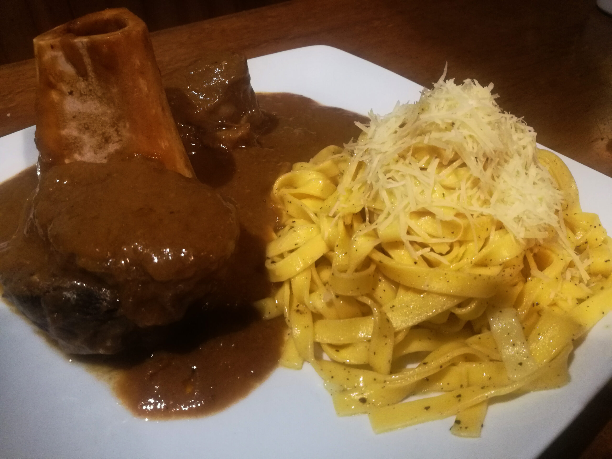 300 gr. de suave rodaja de canilla de res con hueso y tuétano, cocida a fuego lento durante 3 horas.
